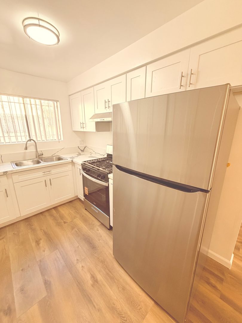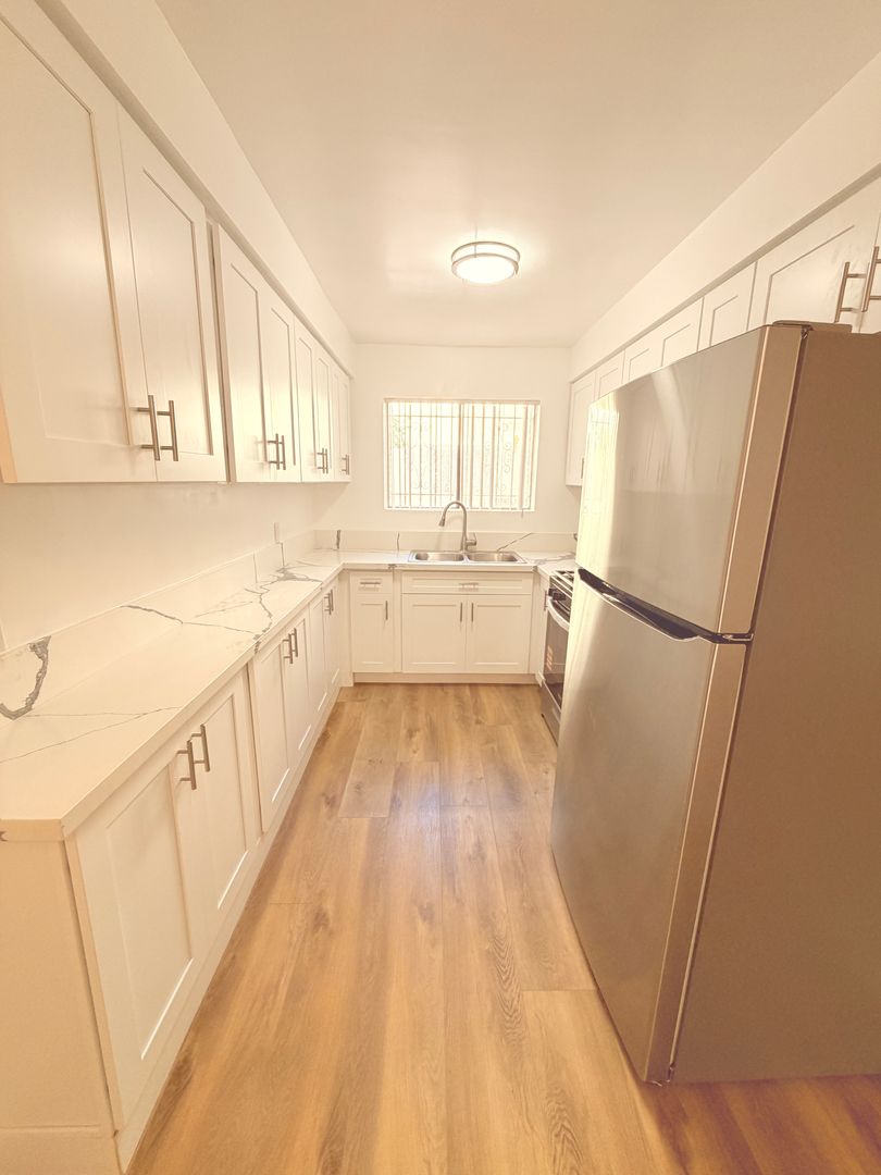 Large, bright 1 bedroom apartment in West Hollywood near Fountain and Fairfax. This fully REMODELED apartment comes with a brand NEW fridge and gas stove. TONS of natural light, window treatment, quartz countertops. The building has controlled entry, on-site manager, on-site laundry, A POOL, AND covered/gated parking for an ADDITIONAL $100 per month! Come see it ASAP.