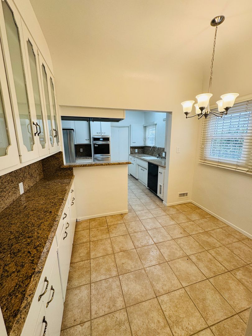 Very beautifully preserved, Spacious downstairs 3-bedroom, 2-bathroom home features tons of kitchen cabinet space and granite counters, a new wall oven, washer/dryer hook-ups, a formal dining room, a breakfast nook, and much more. This home features large windows that allow for natural light, ample closet space, and two entrances. Shared garage parking included!