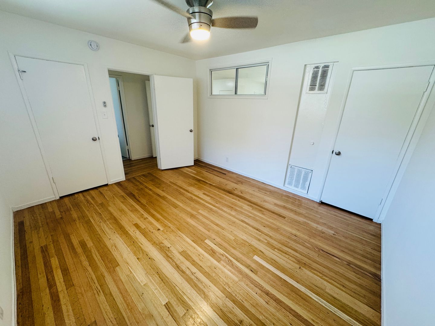 CUTE downstairs one bedroom one bathroom apartment in Hollywood with hardwood floors, NEW kitchen countertops, stove/fridge, and ceiling fan in the bedroom, new blinds, and fresh paint. This 36 unit building has a secured entry, onsite manager, pool, and is nestled near Runyon, WeHo, Downtown, Silverlake, and much more! Parking available for an additional $100 monthly.