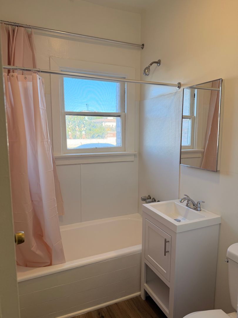 This newly remodeled 3rd floor efficiency in Los Feliz gets great natural light, has a full bath, walk-in closet and built-in shelving.