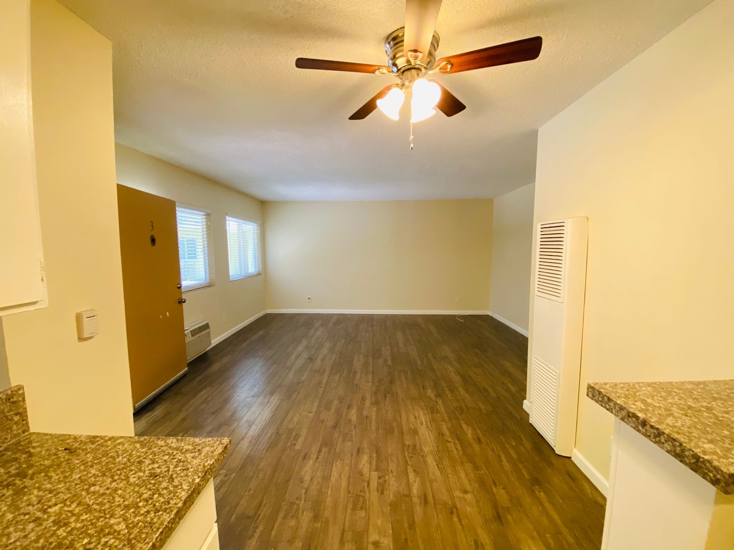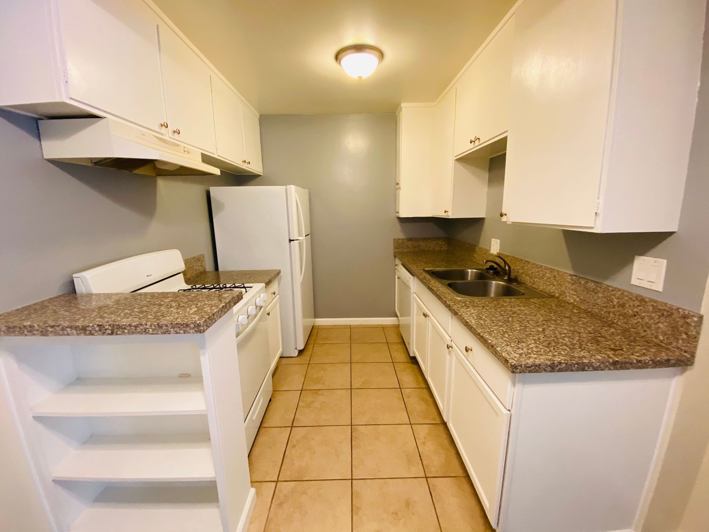 FULLY remodeled two bedroom two bathroom, downstairs apartment with A/C, granite counters, stove, laminate floors, new tiled bathroom and kitchen, on-site resident manager, security entrance, and one gated and covered parking space is available for an additional $100/month. Close to restaurants, bars, shopping, Hollywood, Downtown, and much more!
