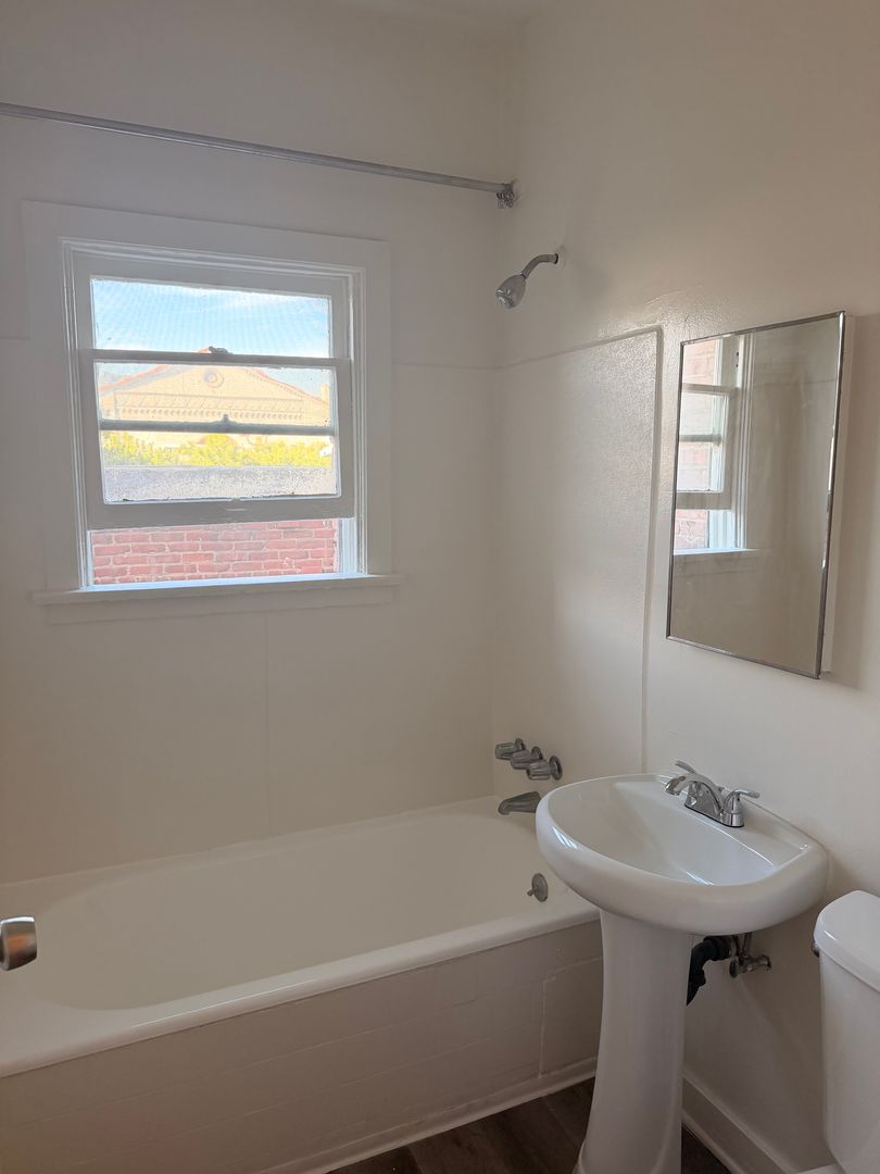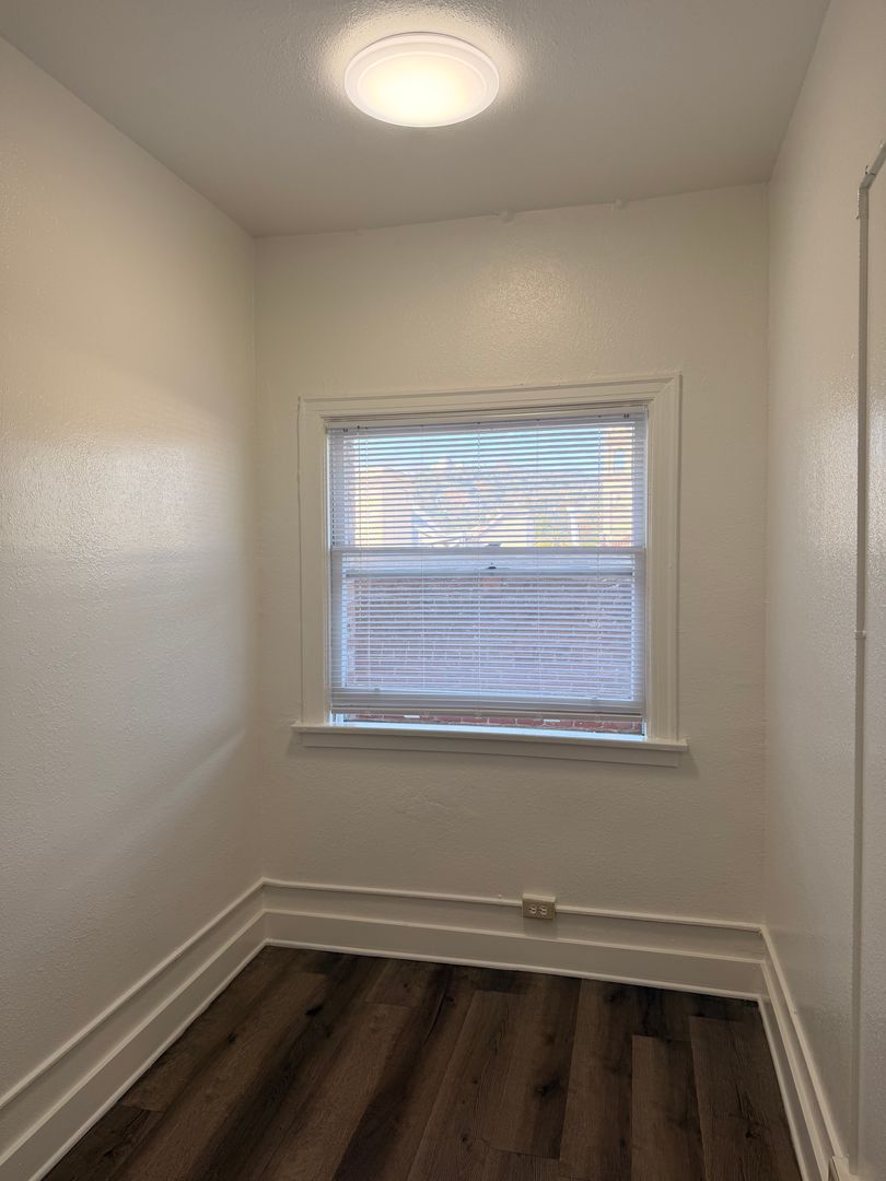 Water, gas, and trash are included in the rent. The building is pet-friendly for cats and dogs under 40 lbs (must be spayed or neutered).