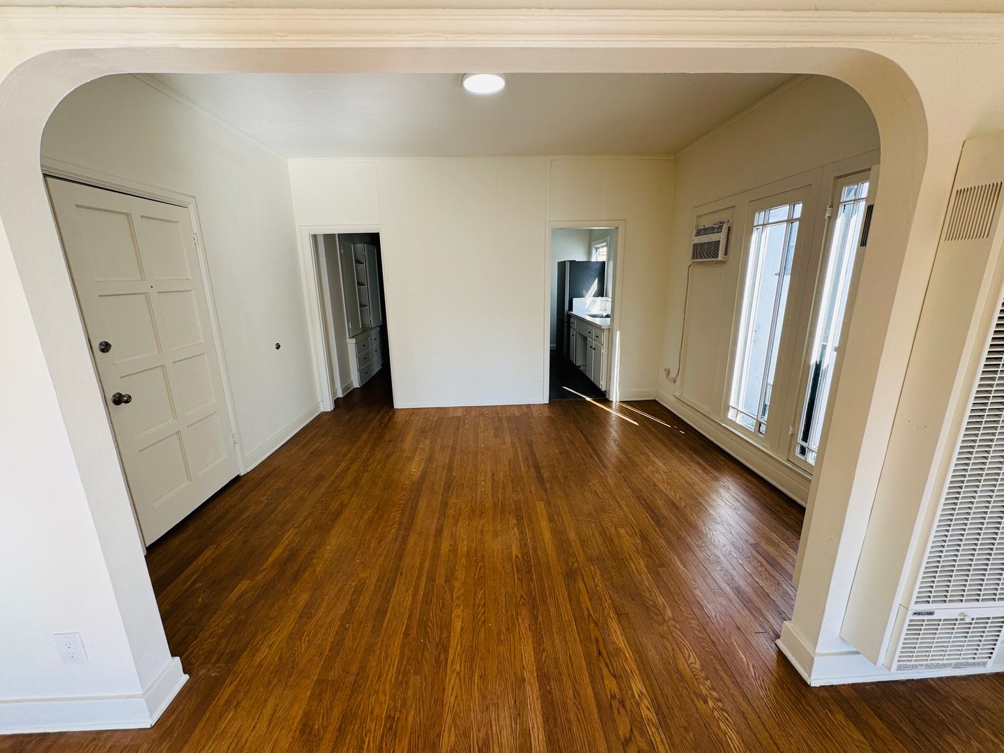 UPSTAIRS One bedroom one bath unit has New Stove, Fridge, washer/dryer, wall AC, newly refinished hardwood floors with 1 parking space. This 4-plex is located near Melrose and Western centrally to restaurants, shopping, grocery stores, public transit, 101 Fwy, and MUCH MORE!