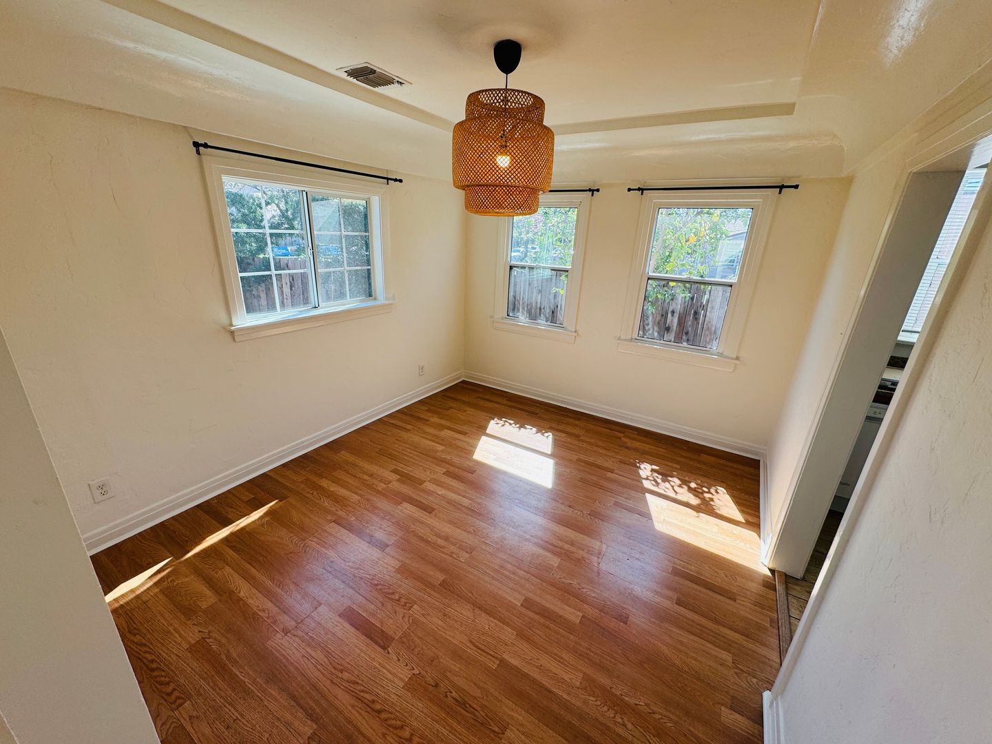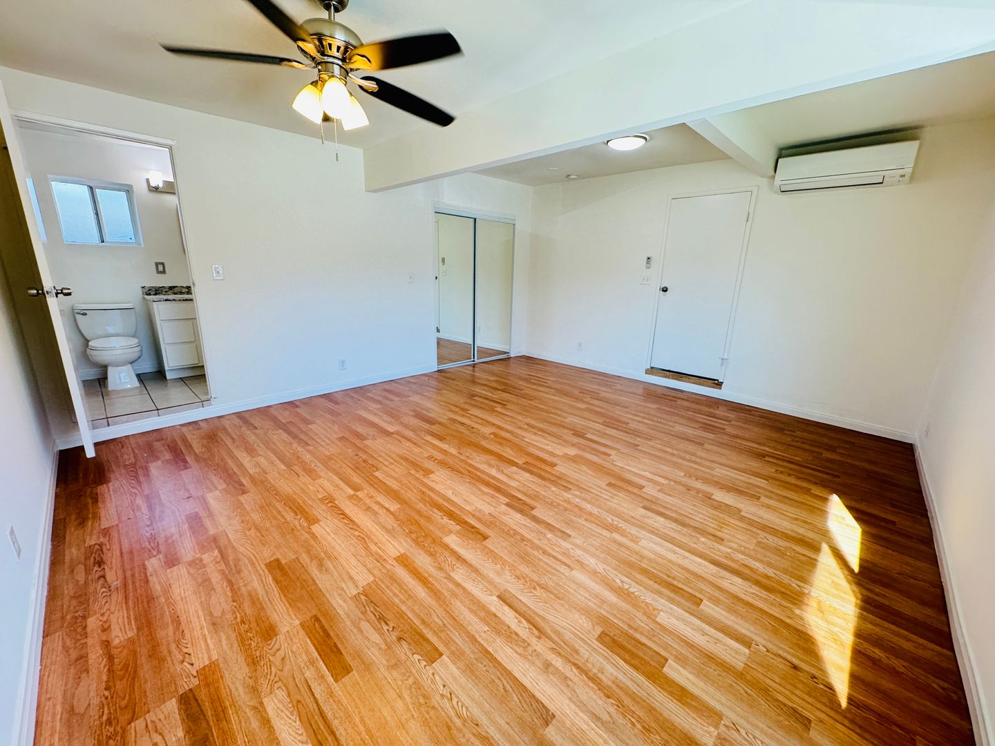 Beautiful, large, and private three-bedroom two-bathroom apartment with a private front yard, three parking spaces, stove, refrigerator, washer/dryer, dishwasher, and Central A/C. Basically, a standalone house without the mortgage and upkeep!