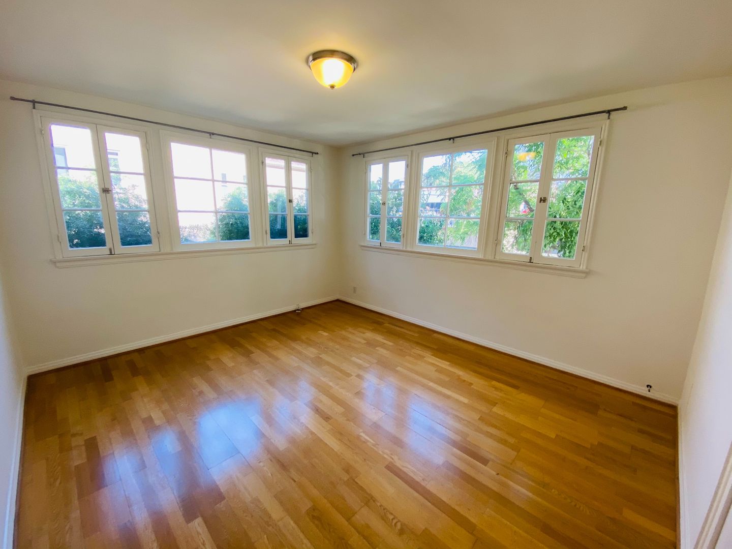 LARGE UPSTAIRS 2 bedroom 1 bathroom apartment with TONS of large windows, closet/storage space, and hardwood floors. This unit has a formal dining room, tiled kitchen and bathroom, automatic garage door (shared parking), CENTRAL AIR, washer/dryer, range, and refrigerator. This cute 4-plex is located at Fountain Ave near La Brea near shopping, entertainment, grocery, restaurants, public transit, and parks!